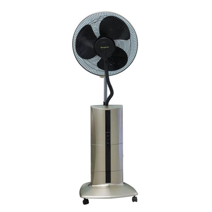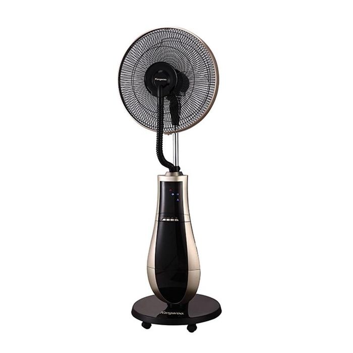 Kangaroo KG209 Mist Fan comes with a remote control for user convenience. It provides regular cooling, humidity control through misting, air ionization, and mosquito repellent, making it perfect for families with children. It is energy-efficient and more cost-effective than an air conditioner.
