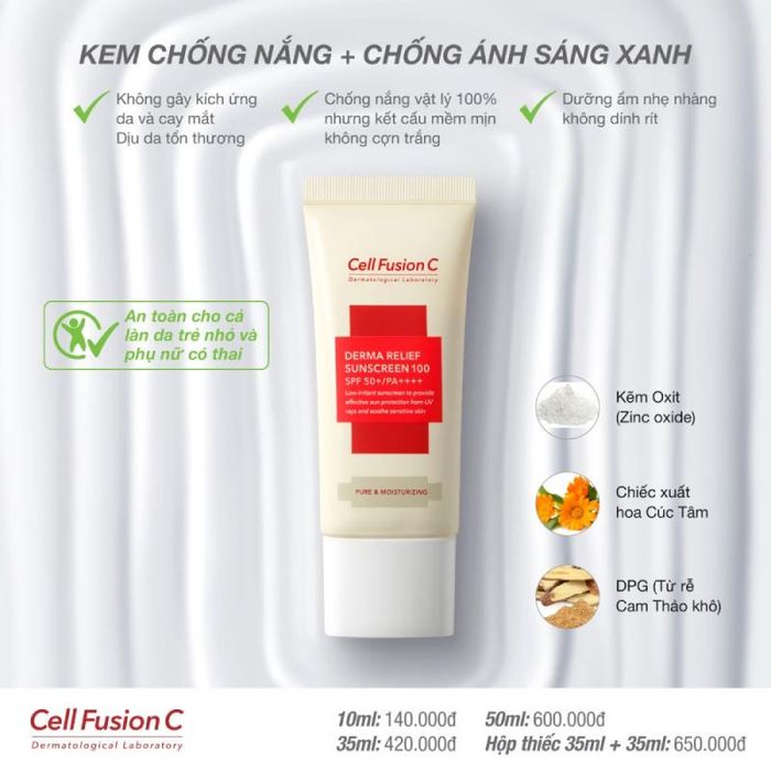 Purchase Link: shopee.vn/Kem-Chống-Nắng-Thuần-Vật-Lý-Chống-Ánh-Sáng-Xanh-Cho-Da-Nhạy-Cảm-Cell-Fusion-C-Derma-Relief-Sunscreen-100-SPF-50-PA--i.151890619.6857099456