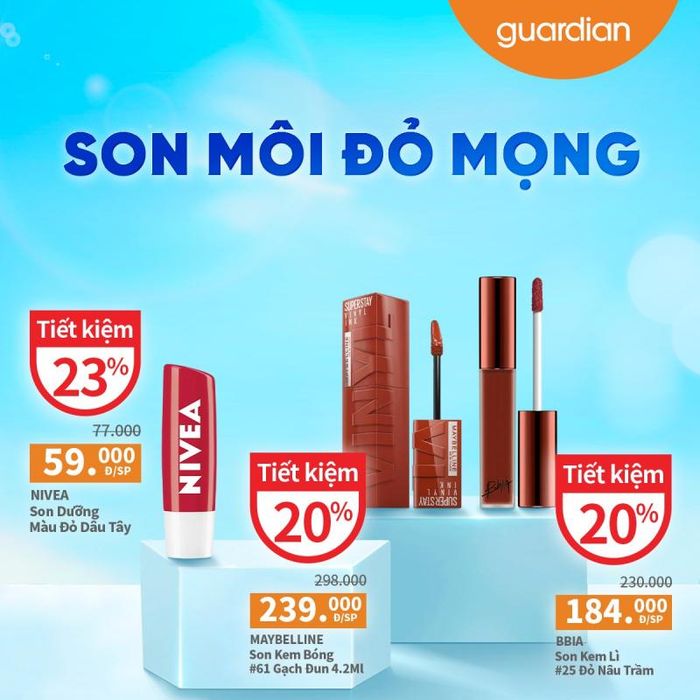 Guardian is a trusted chain of stores featuring over 500 top brands in health and beauty. It’s not just a shop; it’s an entire world dedicated to those who love beauty, with premium, authentic cosmetic products. Explore an extensive range of top-notch beauty items, including lipsticks from world-renowned brands. At Guardian, it's not only about shopping, but about an experience tailored for beauty enthusiasts. With a variety of shades and high-quality products, customers can easily find the perfect items that match their style and personality. Additionally, Guardian has expanded into online sales, allowing shoppers to conveniently purchase their favorite products through leading e-commerce platforms such as Shopee, Lazada, or directly from their official website. This way, customers save time and enjoy a smooth, flexible shopping experience. With a commitment to ensuring maximum satisfaction, Guardian is the ideal destination for beauty lovers and a reliable partner in their journey to maintain their health and beauty.