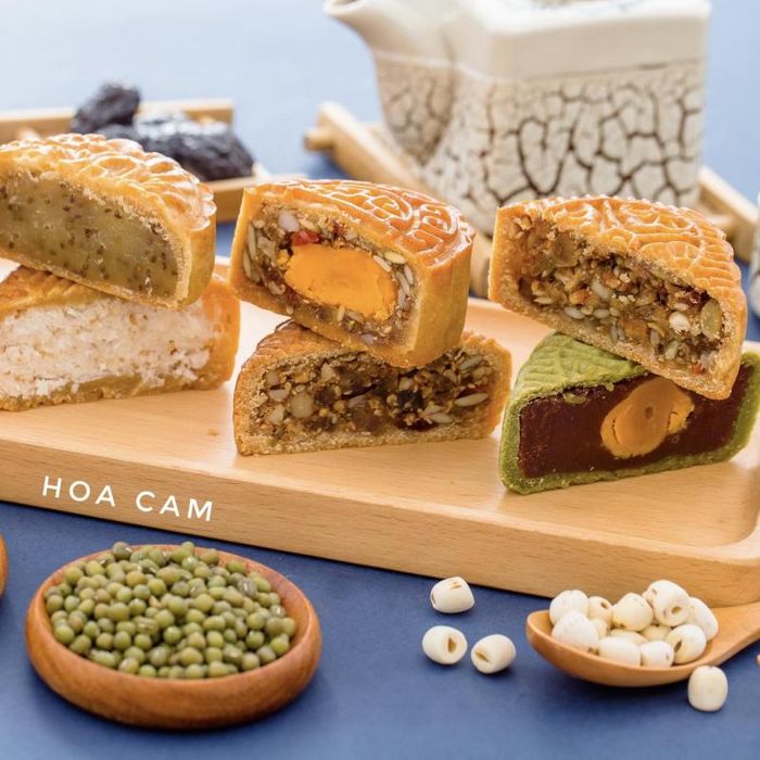 Hoa Cam's mooncakes are made with fillings that are cooked with 40% less sweetness compared to traditional mooncakes. The bakery follows the principle of making their products with fresh ingredients and no preservatives, ensuring health safety. Notably, Hoa Cam Bakery offers a variety of mooncake fillings including: