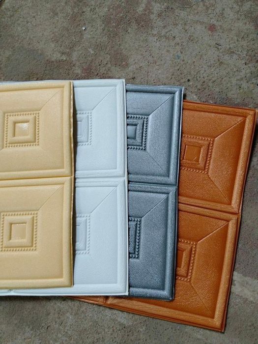 - 3D wall stickers: Similar to wallpaper, but thicker and more cushioned. The 8-layer construction includes a water-resistant PE surface, two layers of insulation, three layers of adhesive, and a protective paper layer.