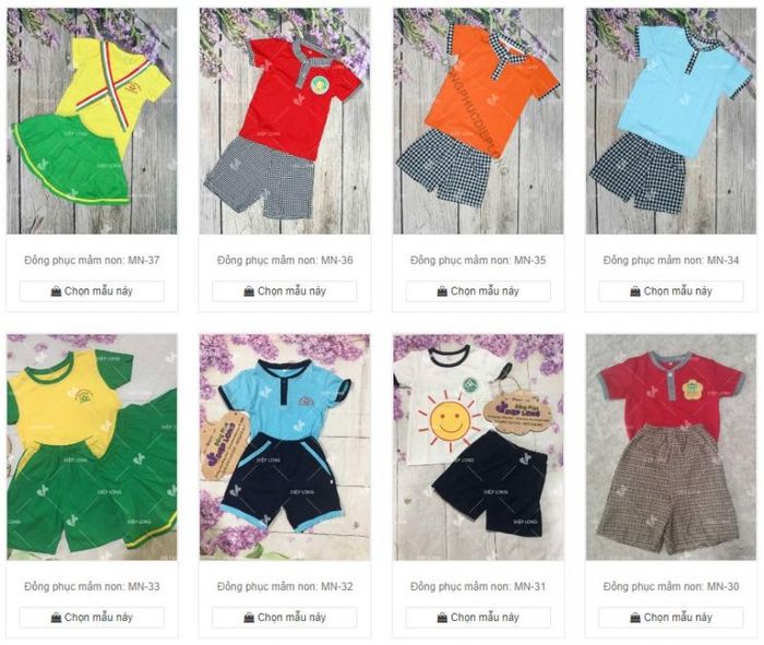 For kindergarten uniforms, Bon Mua offers a wide range of ready-to-use styles, including t-shirts, polo shirts, dresses, and more. Prices are very affordable, ranging from 65,000 VND to around 100,000 VND, and large quantity orders enjoy attractive discounts. If you're considering ordering kindergarten uniforms, Bon Mua should be on your radar!