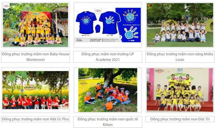 Cava Uniform offers various product lines, including corporate uniforms, T-shirts, preschool uniforms, event wear, class reunion uniforms, and dress shirts. Their preschool uniforms are reasonably priced, ranging from 100,000 VND to 150,000 VND per set, and come with free design services, making them an excellent option for anyone looking for preschool uniforms.