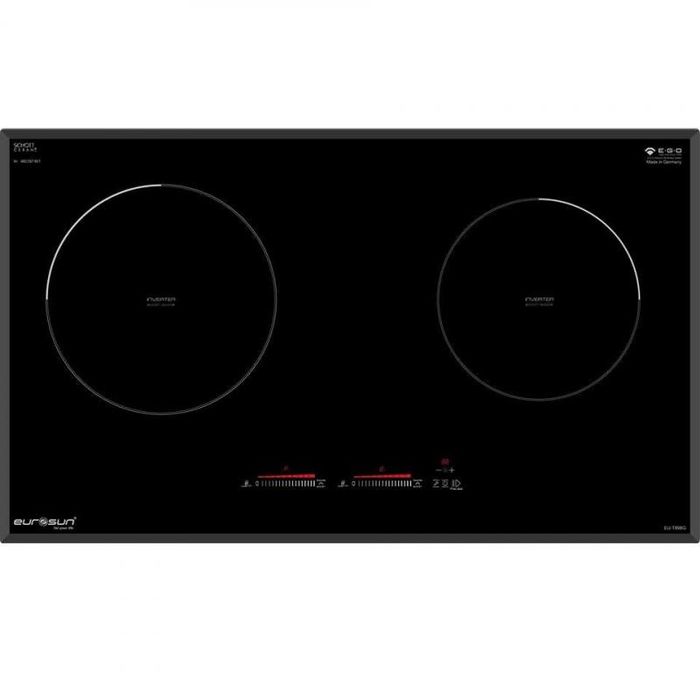 The Eurosun EU-T892G, made in Germany, features a high-quality SCHOTT Ceran glass with a beveled edge and aluminum frame. It comes with a Slider touch control system offering 9 adjustable power levels, along with Inverter technology and Bridge INVERTER technology. A popular choice among discerning customers, the EU-T892G combines advanced features with optimal safety standards including CE, EMC, and QCVN9 certifications. It also includes overheat protection, spill-over prevention, and residual heat warnings, making it a highly reliable and efficient option in the market.