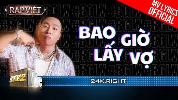 Entering Rap Viet's third season, he maintained his strengths and characteristics that helped him gain fame in the underground scene. With a unique theme, witty and humorous lyrics, along with many creative rhymes and wordplay, the rap song "Bao giờ lấy vợ" became a standout and memorable piece. Moreover, 24k.Right's performance was unique in that it featured the producer working alongside him in the show.