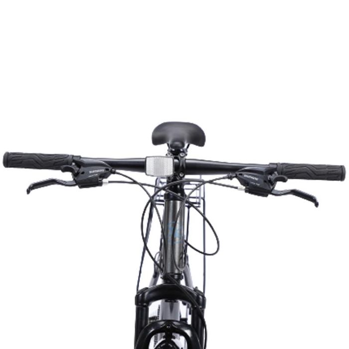 The bike features 700C wheels made from high-quality rubber, offering great traction and a smooth ride. Its disc brake system ensures consistent and smooth braking performance, keeping the rider safe in various conditions. Additionally, the bike is equipped with a Baga (cargo rack) that can support up to 25 kg, making it ideal for carrying essential items on longer trips. The Shimano drivetrain with 7 cogs and 3 chainrings provides smooth shifting and optimal performance for all riders.
