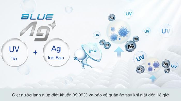 - Blue Ag+ Cold Wash technology kills 99.99% of bacteria, reducing fading of clothes.