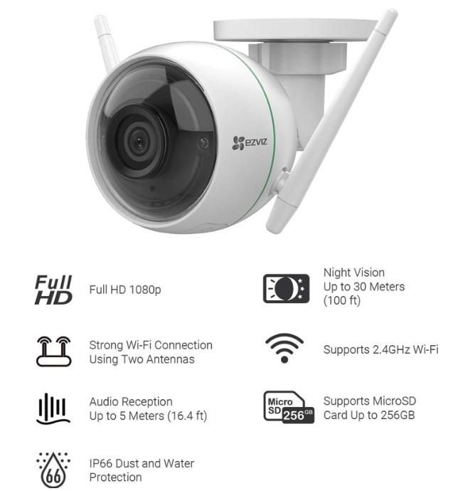 - The outdoor Ezviz C3WN 2MP camera boasts upgraded image quality with a lens that improves from 1.0M to 2.0M, offering excellent image resolution and superior noise reduction, ensuring crisp, clear footage even in challenging lighting conditions.