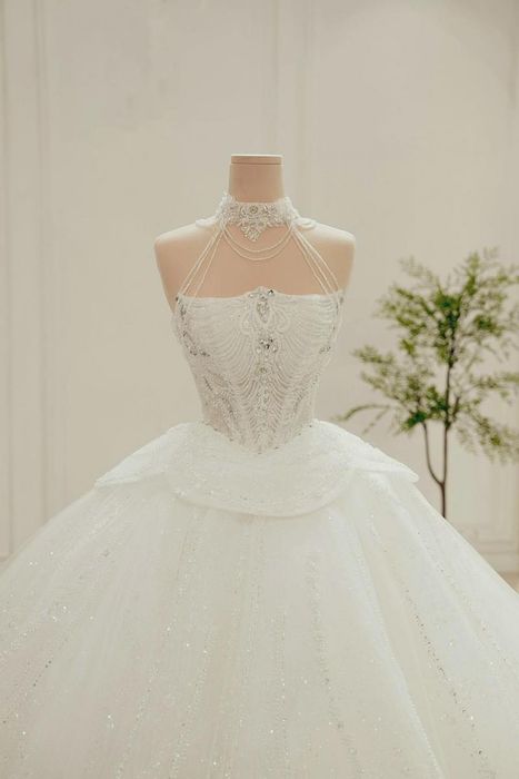 Áo Cưới Hậu was created with the mission to help brides find their perfect wedding dress for their happiest day. Every detail is carefully crafted to ensure that each dress is flawless from every angle, especially when viewed from behind. The back of the dress is designed to highlight the bride's soft, graceful silhouette and alluring curves, while the train is adorned with intricate hand-applied lace and delicately placed beads. The flare of each skirt is perfectly balanced to offer both grandeur and ease of movement.