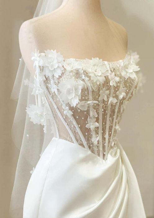 - For off-shoulder or strapless dresses, a delicate veil can help conceal any imperfections.