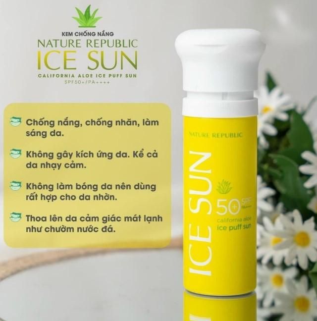 Purchase Link: shopee.vn/Kem-Chống-Nắng-Giảm-Nhiệt-Nâng-Tone-Da-Nature-Republic-Ice-Sun-California-Aloe-Ice-Puff-Sun-SPF50-PA-100ml-i.167114296.10261312976?