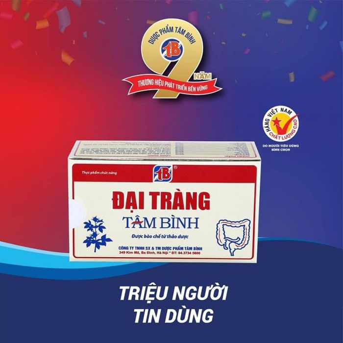 Đại Tràng Tâm Bình is a product created by Tâm Bình Pharmaceutical Company, designed to aid in the treatment of colon-related diseases. It effectively helps reduce symptoms of both acute and chronic colon inflammation, IBS, digestive disorders, abdominal pain, bloating, and diarrhea.