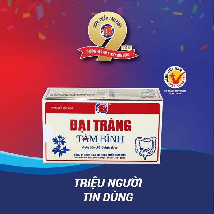 Tâm Bình Colon Supplement is a product by Tâm Bình Pharmaceutical Company, manufactured using modern technology that meets GMP-WHO standards. This herbal-based product, free from synthetic chemicals, ensures safety for all users. Since its market debut, Tâm Bình Colon Supplement has gained the trust of consumers, becoming one of the most effective products for both acute and chronic colon inflammation, spastic colon, and digestive disorders.