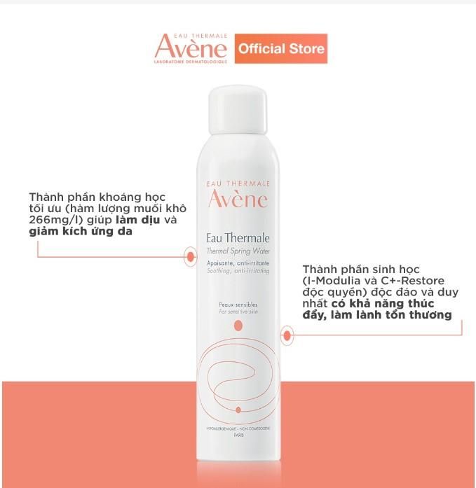- Avène mist replenishes moisture, increases hydration, and balances skin minerals.