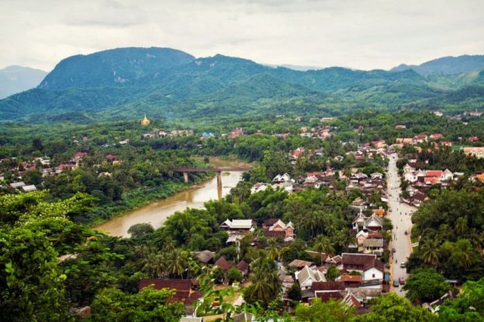 Luang Prabang consists of 58 neighboring villages, 33 of which are recognized as a UNESCO World Heritage Site under the name 'Luang Prabang Town,' due to its unique blend of architectural, religious, and cultural heritage. This fusion includes the influence of French colonialism during the 19th and 20th centuries. Every morning, hundreds of monks walk through the streets collecting alms. A notable landmark of the city is Mount Phou Si, a 150-meter high hill, with a staircase leading to the Wat Chom Si temple offering panoramic views of the city and the Mekong River.