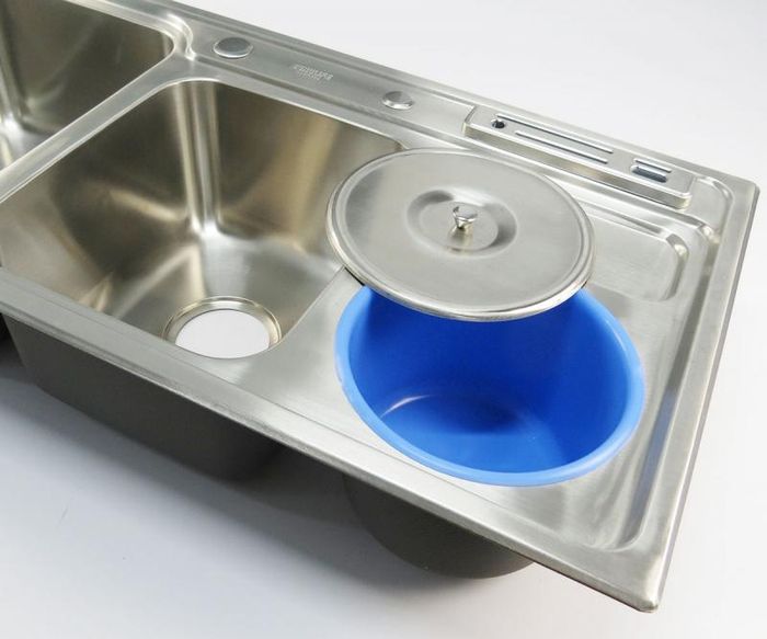 The sink includes a built-in pressurized soap dispenser made of stainless steel 304, installed inside the sink. When the dishwashing liquid runs out, simply pull out the nozzle without needing to remove the entire dispenser. The wide drain pipe ensures quick drainage and prevents blockages. The stainless steel 304 drain cover is engraved with the SUS 304 logo. The sink’s drain system is designed to trap water and eliminate unpleasant odors. The two-layer drainage system consists of an outer plastic layer and an inner stainless steel layer.