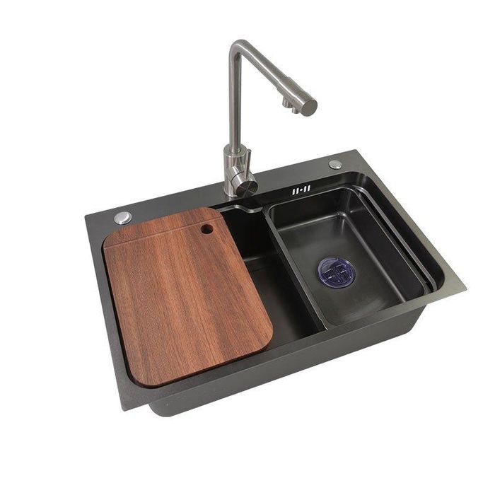 Schmidt Single-Bowl Sink features a modern drainage system that allows water to drain quickly and thoroughly. It comes with a high-quality, antibacterial wooden chopping board and a stainless steel dish rack with a drain valve for added convenience. The sink uses advanced nano technology to increase scratch resistance, and its large size provides ample space for use. The included multifunctional accessories help enhance the product’s performance.