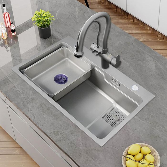 Made from lead-free SUS 304 stainless steel, it is completely safe for your health. Its outstanding corrosion resistance makes it perfect for wet environments. The nano-coated grey surface is smooth, beautifully uniform, and free from color variations. The nano particles provide excellent scratch protection, with an extremely hard surface that prevents marks, making maintenance and cleaning easier. The nano coating also helps repel water, making the sink easy to clean and wipe down.