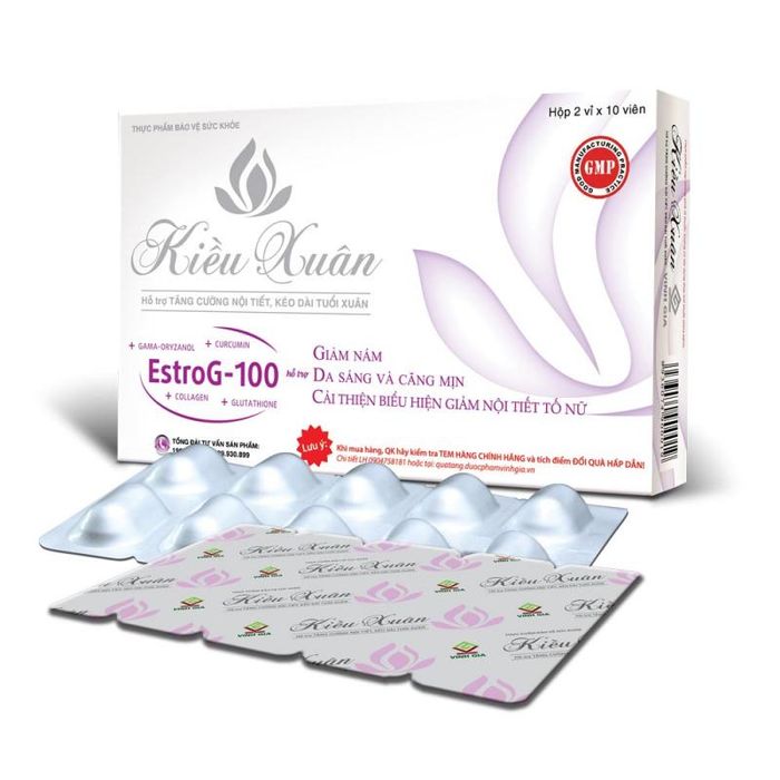 Kiều Xuân Collagen Supplement for Skin Whitening, Dark Spot Reduction, and Hormonal Balance is a product formulated for skin whitening and treatment of dark spots and freckles. The natural ingredients in this product help eliminate long-standing dark spots, restoring a naturally glowing complexion from within, helping you maintain beauty over time.