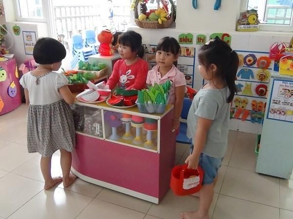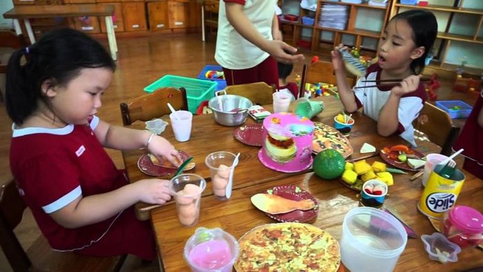 The teacher assigns roles such as father, mother, and child. The parents love, care for, and worry about their child's well-being when they are ill. The child listens to and respects their parents. Through this game, the teacher can introduce new situations to keep the play evolving.