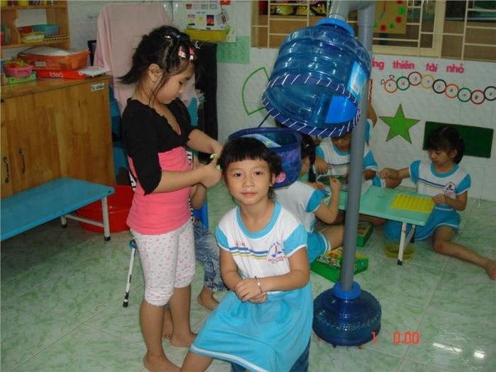 Đây cũng là một trò chơi khá thú vị về nghề nghiệp để trẻ thỏa sức sáng tạo. Cô giáo chọn một bé vào vai khách hàng và một bé là thợ làm tóc, các dụng cụ phục vụ kèm theo như: đồ uốn tóc, kéo, lược,...