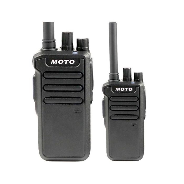 The Moto walkie talkie series features a professional and robust design with a high-capacity 2800mAh battery, providing excellent support for continuous communication. The device offers loud sound quality and a broad coverage range, making it suitable for a wide range of industries. It is used for security, cafes, karaoke bars, restaurants, retail stores, shoe shops, mobile phone shops, event organizations, film production, and more.