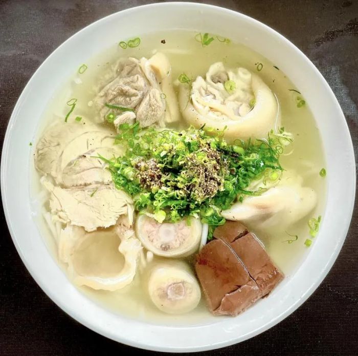 - A popular dish with rich pork leg, savory broth made from boiled bones, paired with tapioca or rice flour noodles.