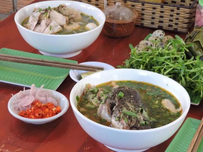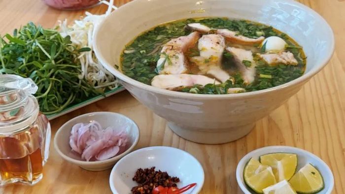 - Made with fresh snakehead fish, a sweet and fragrant broth. This dish is usually served with soft rice flour noodles and aromatic herbs.