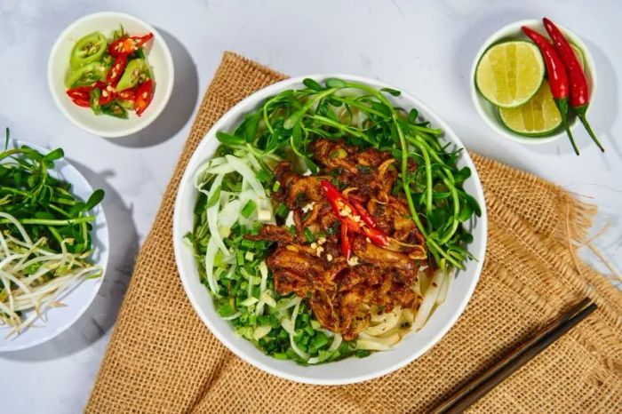 - A specialty from Tây Ninh, also popular in Da Lat, featuring rice flour noodles, boiled pork, pig’s trotters, and fresh herbs, with a sweet, clear broth.