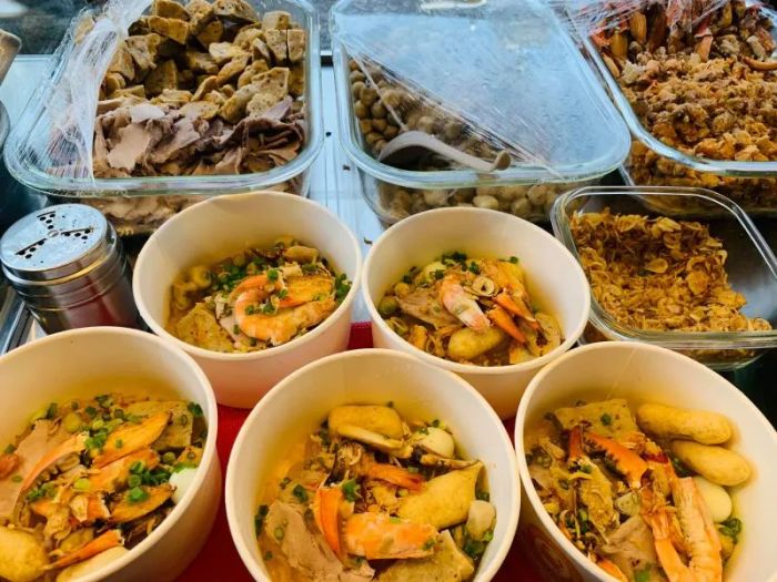 It would be a mistake to leave out Bánh Canh Cua Luxury Đà Lạt from the list of the best bánh canh spots in Da Lat. The restaurant first stands out with its presentation: the bánh canh is served not in a bowl but in a stylish white pot, giving it an elegant and appealing look. The dish is praised for its thick, rich broth, and the noodles, made from a blend of rice flour and tapioca flour, are transparent and chewy, offering a pleasant texture without becoming overwhelming. A typical bowl of bánh canh here comes with various toppings such as crab claws, crab meat, shrimp, lean pork, crab cakes, blood pudding, and quail eggs. The shrimp is large and perfectly peeled, while the crab meat is fresh and carefully selected, ensuring minimal discoloration. All of these ingredients come together to create the restaurant’s renowned flavors.
