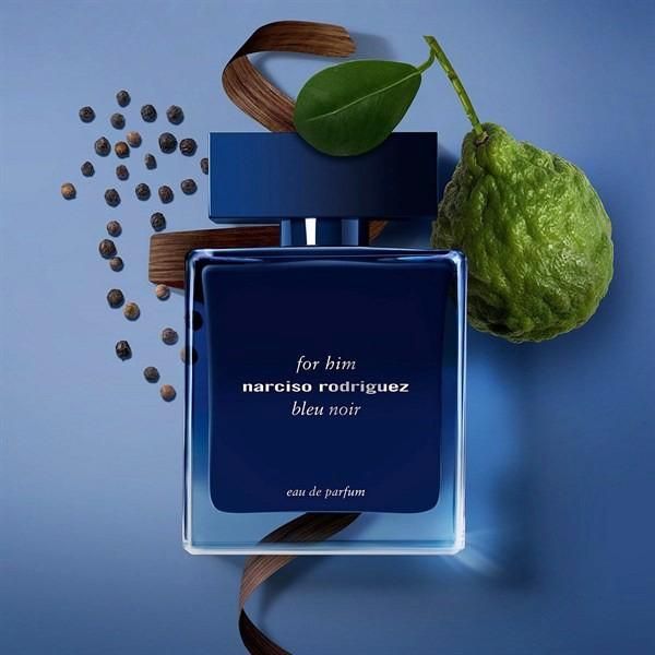 Chai nước hoa Bleu Noir For Him EDP vẫn là một hình chữ nhật tinh khiết và phong cách, ngoại trừ nó có màu xanh đậm với một bí ẩn của riêng nó; tính trong suốt đa lớp tiếp tục được tạo ra bởi quá trình viết chữ từ bên trong. Bleu Noir For Him EDP được mô tả là mùi hương lôi cuốn, hấp dẫn, phá cách và đầy quyến rũ dành cho phái mày râu. Với tông hương nồng nàn, ấm áp, đầy tinh tế, Bleu Noir EDP đầy ma mị với hương tuyết tùng, cỏ Vetiver, hổ phách, xạ hương và cây mun. Những thành phần này cũng giúp cho Bleu Noir kéo dài thời gian lưu hương dai dẳng đến cả ngày dài. Vẫn giữ nguyên thiết kế vuông vức đầy mạnh mẽ như bản EDT, Narciso Rodriguez Bleu Noir For Him EDP tiếp tục đốn tiếp các anh với vẻ đẹp mạnh mẽ, không phô trương nhưng hút mắt của mình.