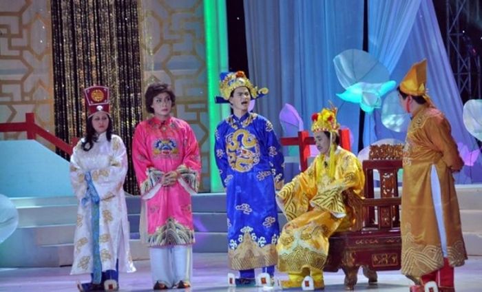 On cultural and social topics, Táo Quân 2018 mocked the boom in beauty pageants, condemned the misuse of social media, and addressed the collective 'keyboard warrior' mentality. To lighten the mood, the actors reenacted famous lines from popular TV dramas of the year and praised the U23 Vietnam football team's runner-up finish at the U23 Asia Championship. Alongside familiar faces from recent Táo Quân seasons, the return of Minh Vượng and Minh Hằng delighted viewers. Minh Vượng made a 10-year comeback, impressing with her natural, humorous acting. Minh Hằng played calmly yet humorously, with sharp wit. Younger actors like Trung 'Ruồi,' Minh 'Tít,' and Duy Nam added fresh energy to the program. Several elaborate musical performances were staged, with the actors changing costumes after each scene, adding vibrancy to the show. Familiar faces like Quốc Khánh, Xuân Bắc, Công Lý, Vân Dung, Tự Long, Quang Thắng, and Chí Trung continued to maintain their strong performances from previous seasons.