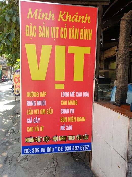 Minh Khánh - Vịt cỏ Vân Đình has been around for many years and has consistently maintained its quality. The roasted duck is the most popular dish among customers here. The duck is well-seasoned, flavorful, and tender. The meat is firm, and the dipping sauce is made with a special recipe that adds a savory touch. The thick, sweet meat is a real treat with every bite. The restaurant's menu features a variety of duck dishes like sour tamarind duck stew, duck noodle soup, duck porridge, and bamboo shoot soup.