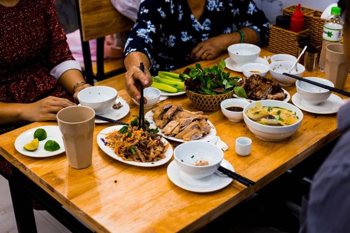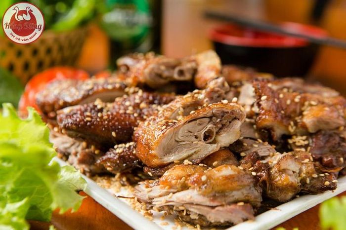 Hoàng Ký – The authentic clay oven roasted duck is the only place where ducks are roasted using traditional clay pots and charcoal by a skilled Chinese chef. The restaurant offers a cozy dining experience with affordable prices, allowing anyone to enjoy a meal for under 100k VND per person. The signature duck at Hoàng Ký is prepared with a unique seasoning blend, making it the only restaurant in the area to use the special Bát Tràng clay oven for roasting. This roasting method gives the duck a distinctive flavor, thanks to the over 30 rare herbs and ingredients, including star anise, cinnamon, and goji berries, that are used to marinate the duck, offering health benefits.