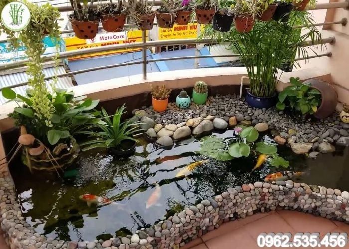 - Beautiful Balcony Koi Ponds: These ponds create a peaceful gathering place where family members can relax and watch colorful koi fish swim. They enhance the home's appearance and make balconies feel fresher and more spacious.