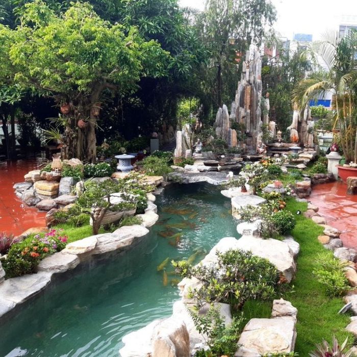 It would be a huge oversight to discuss the best and most reputable Koi pond construction services in Ho Chi Minh City without mentioning Sân Vườn Xinh Landscape Design Co., Ltd. With years of experience, Sân Vườn Xinh specializes in designing and building various types of Koi ponds, including outdoor ponds, rooftop ponds, and mini ponds.