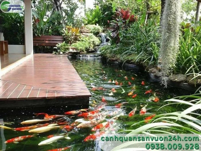 Building a high-quality Koi pond is no simple task. It requires precise technical standards to ensure a successful and thriving environment for the fish. As one of the most reputable and professional companies in the field, Cảnh Quan Sân Vườn 24h excels in delivering aesthetically pleasing, technically sound, and top-quality Koi ponds.