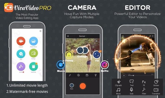 Many young people love using VivaVideo, and even beginners can quickly get the hang of it after just a few tries! It's easy to combine multiple videos, add themes, effects, stickers, text, and music to your creation. VivaVideo offers all the essential video editing features: cutting, merging, adding music to videos, creating videos from photos, editing videos for YouTube, adding stickers and text, and more. Create your own vlog or fun videos with Viva's video editor.