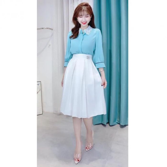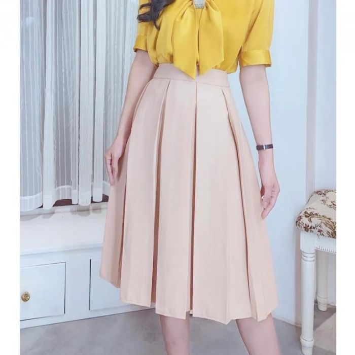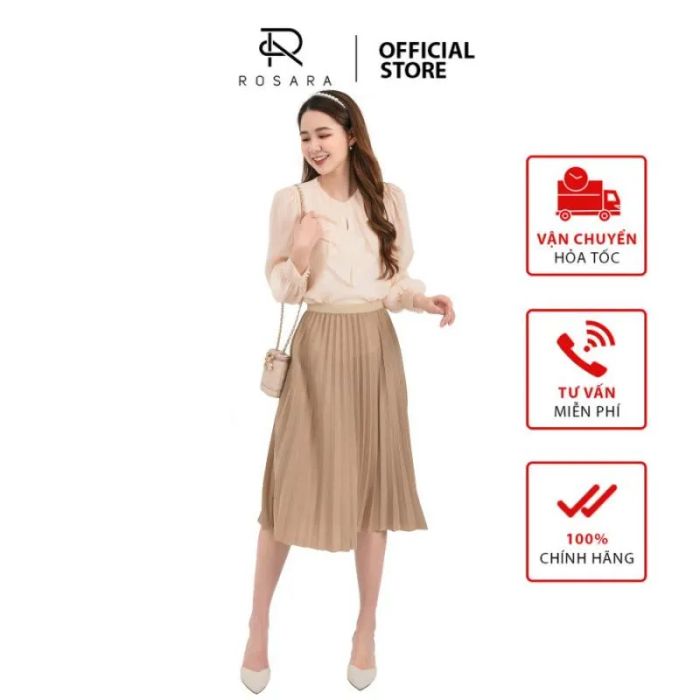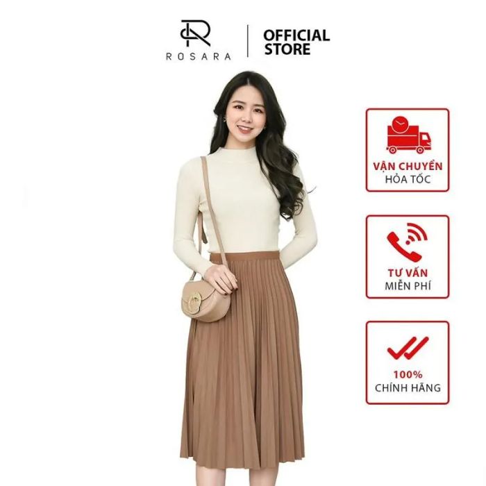 Purchase Link: shopee.vn/Rosara-SP15-Three-Color-Pleated-Midi-Skirt-with-Elastic-Waistband