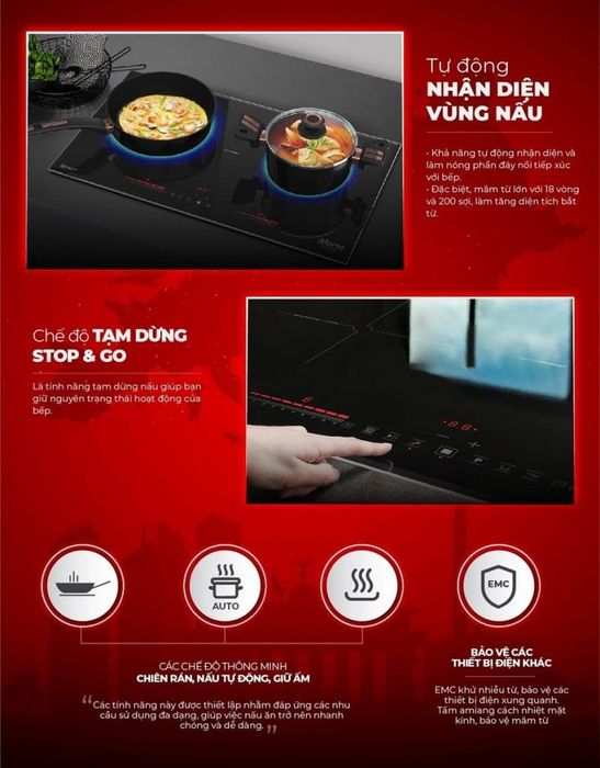 Với chức năng tự ngắt bếp khi không có nồi bên trên, cảnh báo dư nhiệt và cảnh báo nồi nấu không phù hợp để người dùng luôn yên tâm về hiệu quả và tính an toàn khi sử dụng bếp từ trong gia đình.