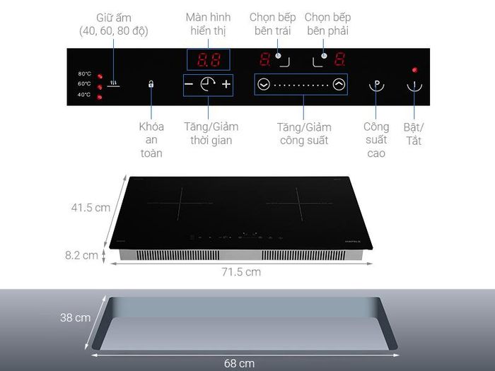 Entering the Vietnamese market in 1998, Hafele has consistently expanded its product range and services, providing comprehensive living space solutions to the Vietnamese people. Hafele induction cooktops come with multiple practical features that cater to various cooking needs. Most Hafele induction cooktops offer 9 power levels, allowing you to select multiple levels simultaneously. Other useful features include a 99-minute timer for precise cooking control, a warming function, overflow protection, a pause function, power sharing, automatic cooking zone detection, and rapid cooking capabilities. The warming function helps to quickly reach the desired temperature, reducing cooking time and conserving energy.