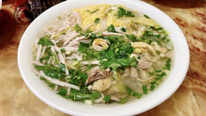 Bun Thang Ba Duc is a well-known spot located in a narrow alley on Cau Go Street. The simple decor and air-conditioned space make it a comfortable place to enjoy a hot bowl of Bun Thang. The owner of the restaurant uses years of experience to create a rich and pure broth for this iconic dish. One of the restaurant’s secrets lies in the preparation of the broth: it’s made from simmered bones, which are then refrigerated overnight. The next morning, the fat is removed, leaving behind only the clear, flavorful broth.