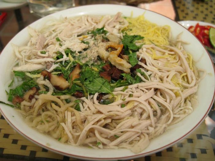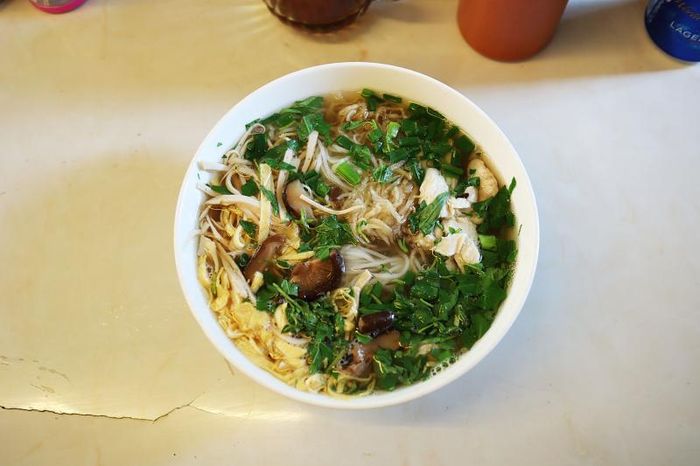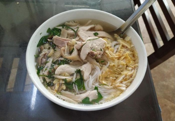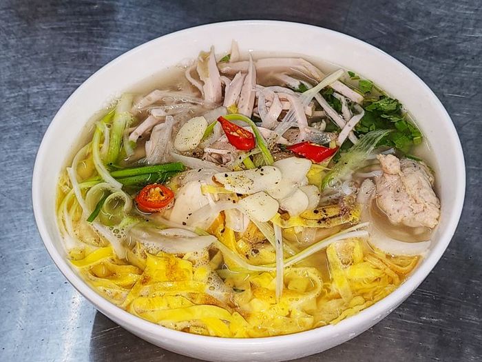 Ba To Hang Be - Pho Ga & Bun Thang features a fragrant, clear broth, subtly infused with the scents of shrimp and chicken. The dish is topped with thinly sliced eggs, tender chicken pieces, fragrant mushrooms, and crunchy radish slices. The restaurant operates only in the morning until mid-afternoon, with a brief evening service, so if you want to enjoy the authentic flavors of early 21st-century Hanoi, make sure to arrive early. The restaurant is also known for its warm and friendly owner, who makes every guest feel at home. If you're a Bun Thang enthusiast and haven’t tried the dish here yet, you're truly missing out! Be sure to stop by when you get the chance—you won’t be disappointed!