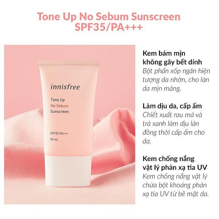 Link mua hàng: shopee.vn/(Bao-bì-mới)-Kem-chống-nắng-kiềm-dầu-và-nâng-tông-da-innisfree-Tone-Up-No-Sebum-Sunscreen-50ml-SPF50-PA-50ml-i.155343961.2731358357?