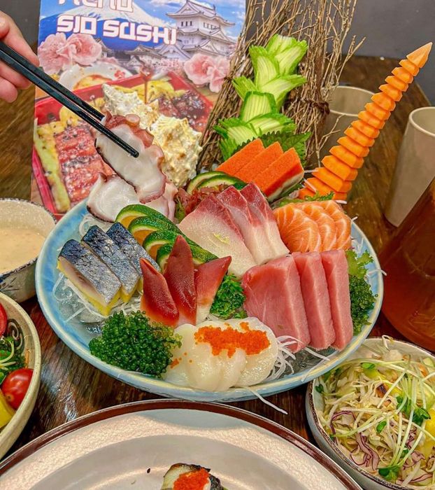 As one of the most renowned Japanese restaurants in Hanoi, Sio Sushi is well-loved by young locals for its unique design that immerses visitors in traditional Japanese culture. The entire space is furnished with dark wood and wooden tables, accompanied by red lanterns that create a sophisticated ambiance. Inside, you’ll also find various Japanese paintings, adding an artistic touch that appeals to lovers of fine art.
