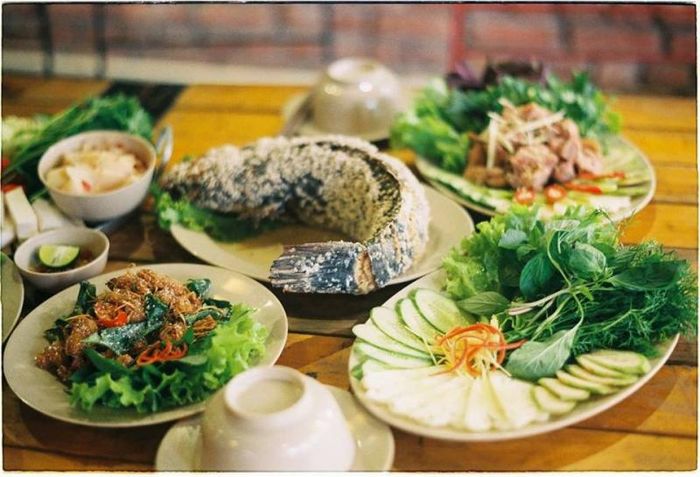 Located in Ô Chợ Dừa, Đống Đa District, Hẻm Quán has long been a popular culinary destination for Hanoi's residents. Visitors come for different reasons—some are drawn by the delicious dishes of Southern Vietnam, others are curious to try something new, while many are regular patrons. Regardless of their reasons, they all enter with excitement and leave with satisfied smiles. The Southern culinary brand is synonymous with Hẻm Quán, offering dishes that exude the essence of the Southern countryside, such as smoked tofu, snakehead fish hotpot with tamarind leaves, stir-fried vegetables with quẹt sauce, pork rolled in rice paper, bizarre chicken feet, grilled snakehead fish with chili salt, and shrimp and pork coconut heart salad…