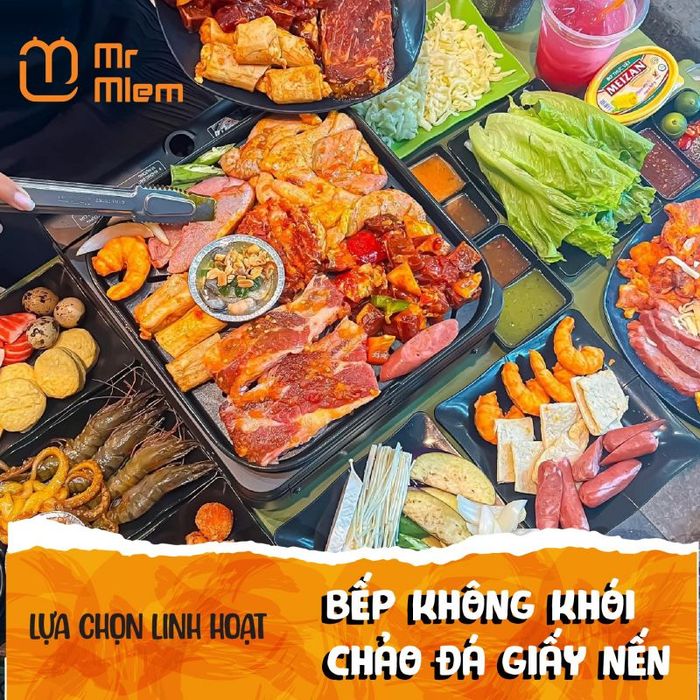For food lovers, the allure of barbecue and hotpot dishes never fades. Offering a delightful culinary experience, the all-you-can-eat hotpot and barbecue buffet has become quite popular, especially for gatherings of large groups. If you're planning a small birthday party or just a casual get-together, visit Mr Mlem- Buffet Bò Nầm Nướng for a feast with a variety of delicious offerings. Known for its buffet-style meals, this restaurant provides an extensive menu with both cooked and uncooked items. The grilled dishes are richly seasoned, the hotpot broth is aromatic and steaming hot with a variety of dipping options, and of course, don't forget the delectable desserts to complete your meal. The restaurant offers a wide range of sauces, each with its unique signature flavor. Though not overly spacious, if you're looking for a private area for your event, be sure to contact the staff in advance for proper arrangements!