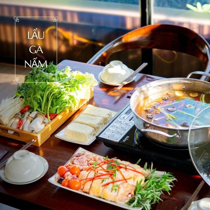 Chicken hotpot is a truly Vietnamese dish that is both delicious and easy to enjoy for everyone. At Nhà hàng Vị An, this dish is sure to impress. A hearty set of chicken hotpot includes the soup, a plate of well-cut chicken pieces, tofu, vegetables, and mushrooms for the hotpot. The broth is rich and sweet, simmered from bones and nourishing herbs. The chicken meat is tender and firm, not overcooked, and the hotpot includes chicken gizzards just right for the dish. Seasonal vegetables such as mustard greens, shiitake mushrooms, and chicken drumstick mushrooms make the perfect accompaniment. With the cooler months calling for gatherings with family and friends, head to Vị An and enjoy this delicious chicken hotpot set!