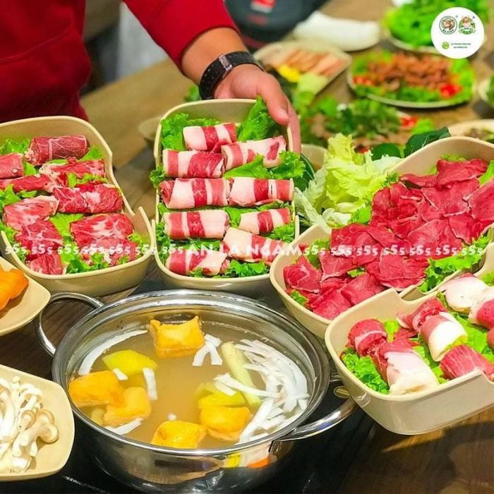 The restaurant is renowned for its hot pot with beef dipped in vinegar, prepared using a unique recipe that gives it a distinct flavor. All ingredients used to create the hot pot are fresh and carefully selected for safety and cleanliness. The hot pot dishes offered include various cuts of beef such as sirloin, brisket, beef tendon, rib-eye, and beef tripe. As for the ambiance, 555’s combination of natural greenery and stylish wooden furniture creates a cozy and relaxing atmosphere. Whether you’re an office worker, student, or traveler from anywhere, this hot pot place is beloved by all who visit and enjoy one of the finest beef hot pots in Hanoi.
