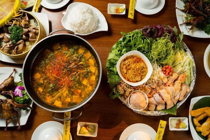 The menu at Cầm Viên Quán never fails to impress guests. The restaurant serves a variety of delicious wild game dishes, such as wild bird and wild duck, along with an array of rare forest specialties. Particularly, the hot pot dishes are a favorite, especially on rainy days, as they capture the hearts of all diners. Though hot pot is a familiar dish, Cầm Viên Quán elevates it to a new level of culinary excellence, offering an unforgettable experience through the chef's creative touches—from meticulous preparation to artful presentation. Located on Hoàng Ngân street, Cầm Viên Quán stands out with its warm, inviting atmosphere, making it the perfect spot to escape the chaos and rush of daily life.